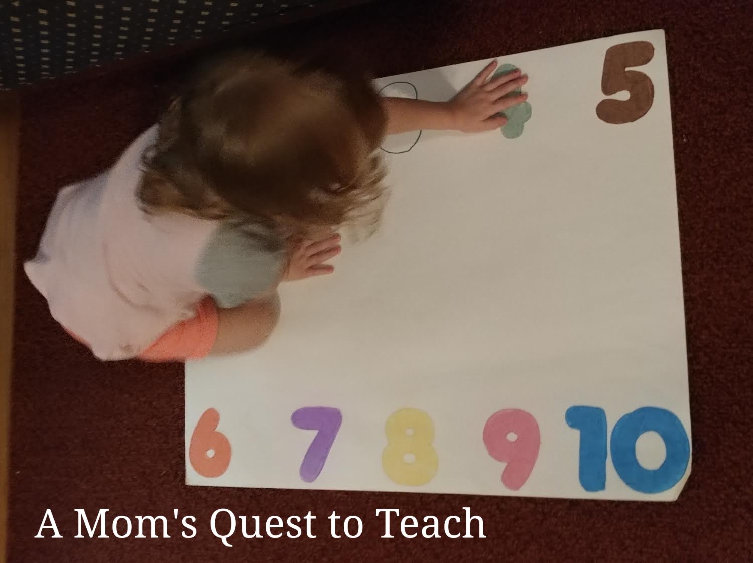 While drawing the numbers of the poster board, I learned how important it is when doing any project for a toddler, who is sitting next to you, to not leave writing utensils in that toddler's reach. But I just have to laugh it off because the project is for him so who cares if it looks perfect as long as he's happy to play with it and can enjoy it and learn from it.