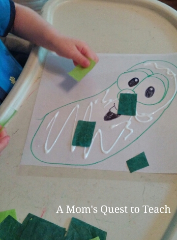 2. Tear or cut the tissue paper into small pieces. Your children can help you with this step if you wish.
